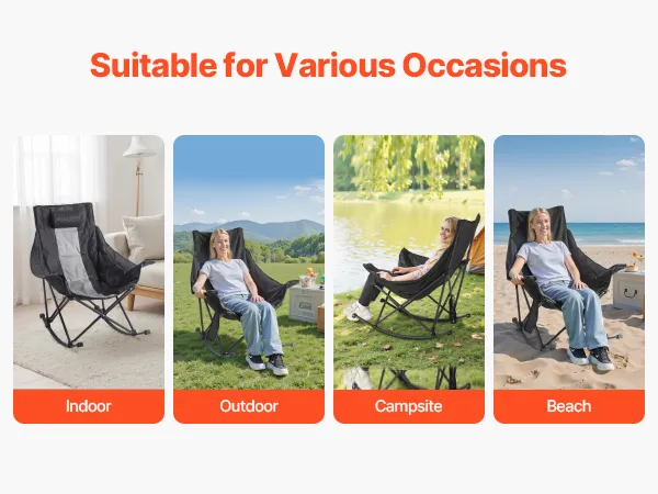 Suitable for camping, patios, the beach, or even indoor lounging. This rocking chair is designed to handle a wide range of environments, offering comfort wherever you go.