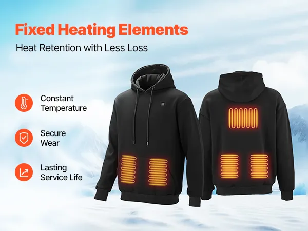 • Comfortable & Hard-Wearing: Our heated hoodie features wrinkle-resistant cotton and polyester blended outer layer with a polar fleece inner layer. Its anti-static finish makes dressing easier, while the adjustable hood keeps its shape