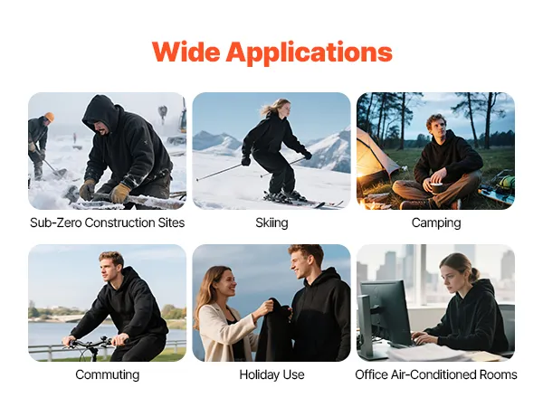Our heated fleece jacket provides a reliable performance to maintain a constant temperature and warmth anytime, anywhere. It is ideal for outdoor work in severe cold, sports, camping, cycling, commuting, and air-conditioned rooms, also for sharing with family or friends.