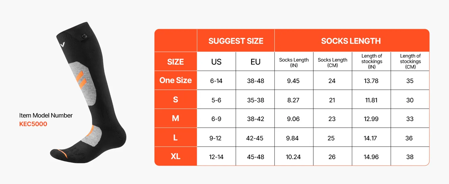 Our heated socks with four heat settings, ideal for everyone—from young adventurers to seniors—ensuring everyone stays warm and cozy in all conditions.