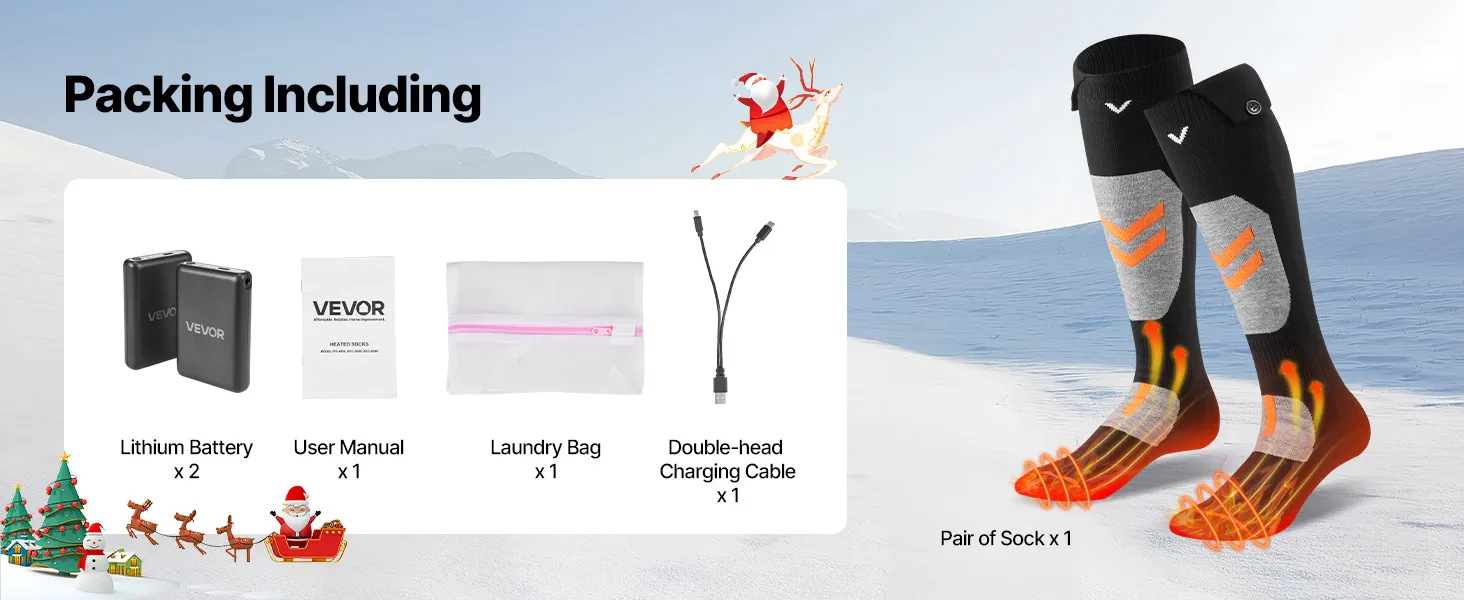 Ideal for any setting—work, study, skiing, hiking, driving, and more! These electric heated socks keep you warm during activities indoors or outdoors, whether for fun or chores.