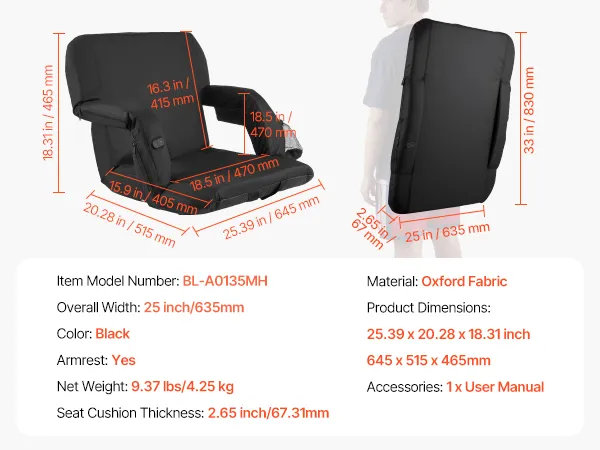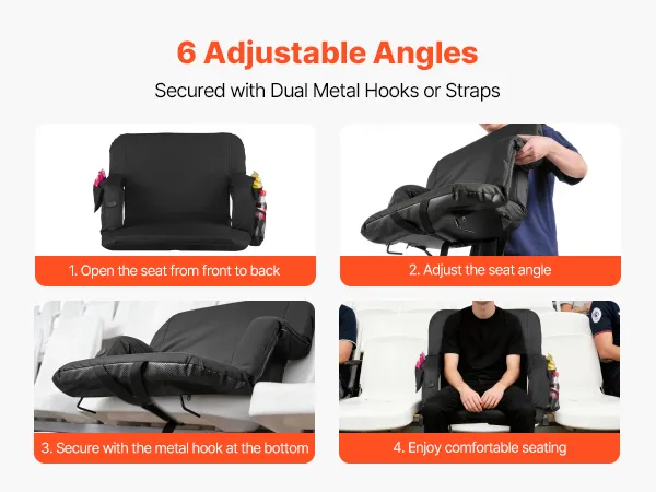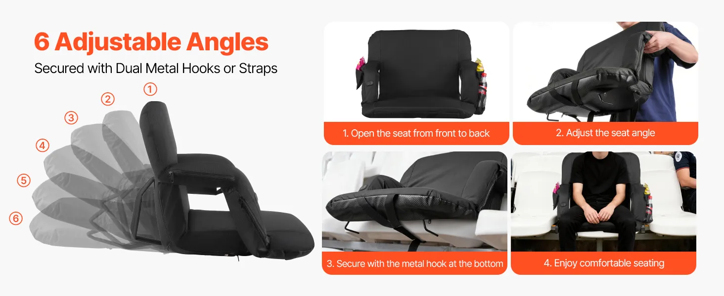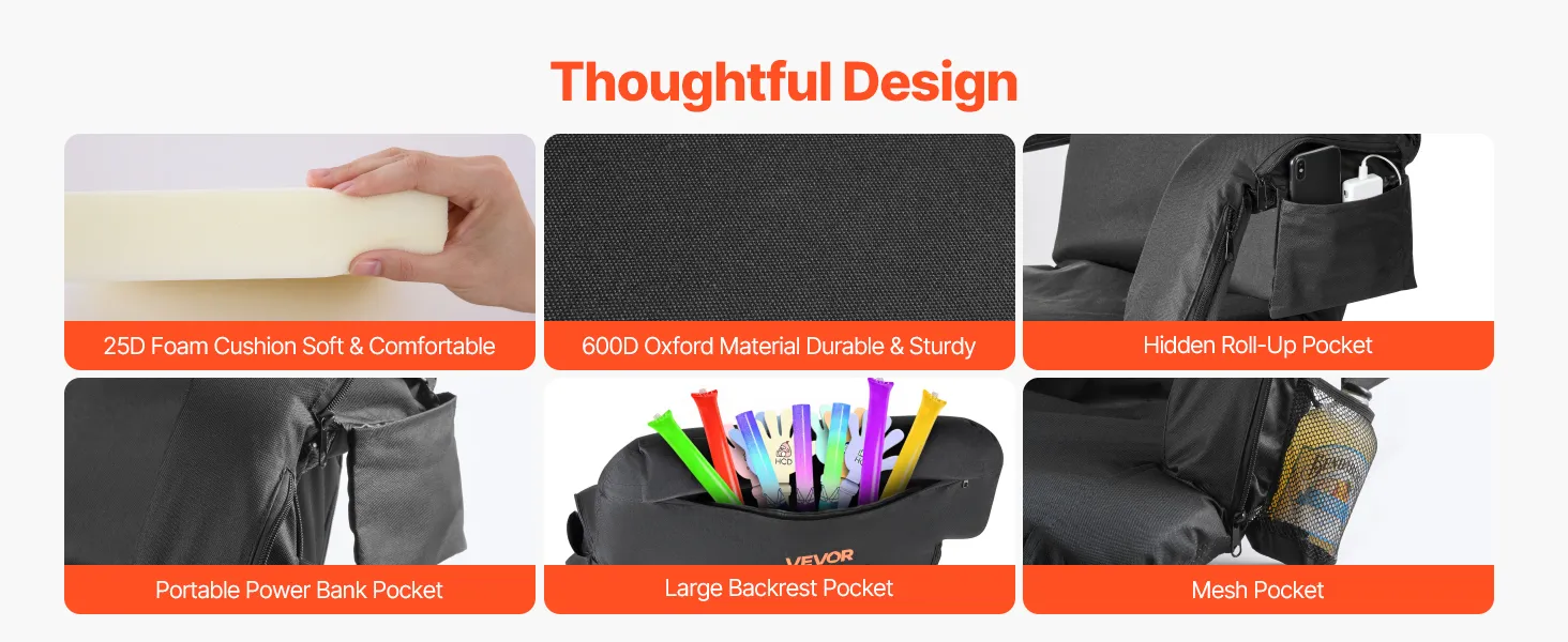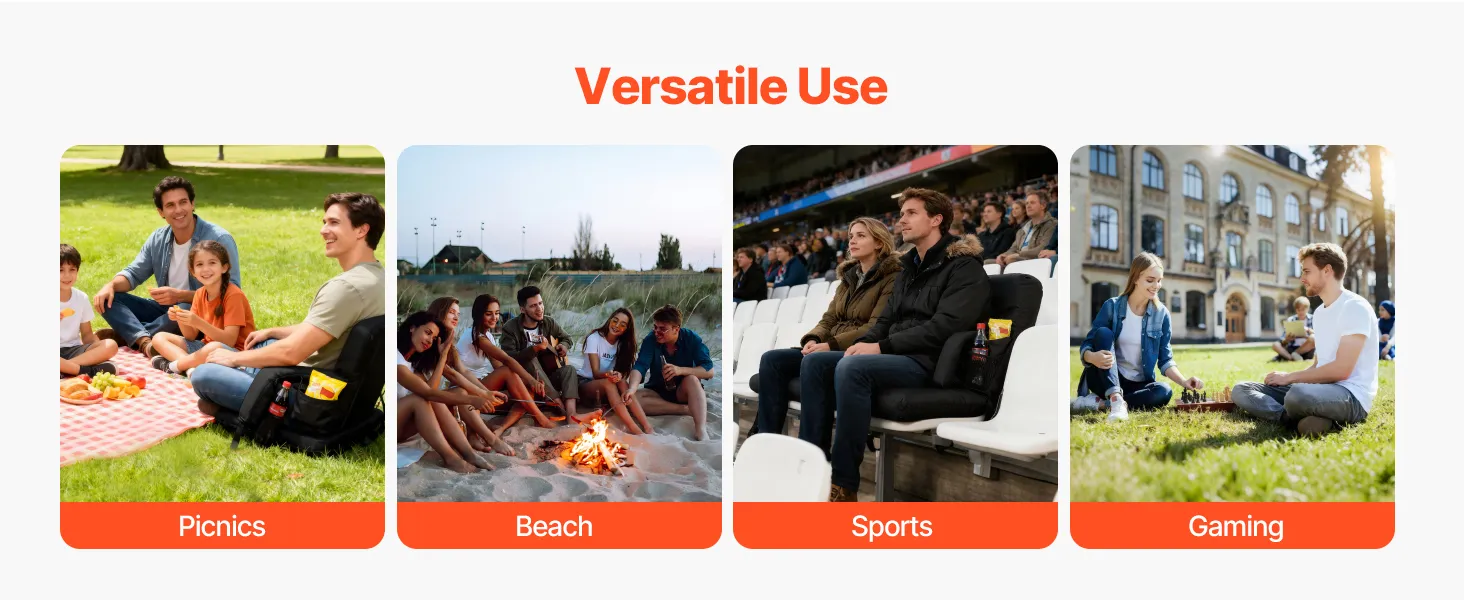 • Wide Applications: This VEVOR foldable stadium seating is easy to carry and professionally designed for reliability. It is ideal for outdoor sports events, park concerts, picnics, camping, and beach activities, offering comfortable and convenient seating for home or outdoor gatherings