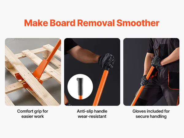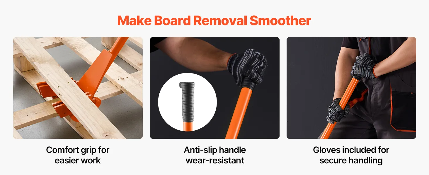 This cushioned, non-slip handle of the pallet breaker helps cut hand fatigue and improve control. The included gloves add simple protection, so every pry feels smoother.
