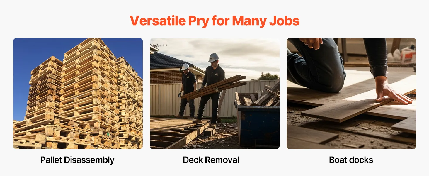 This deck removal tool tackles pallet disassembly, deck removal, and floorboard lifting. You take it from warehouse to jobsite to DIY projects with confidence.