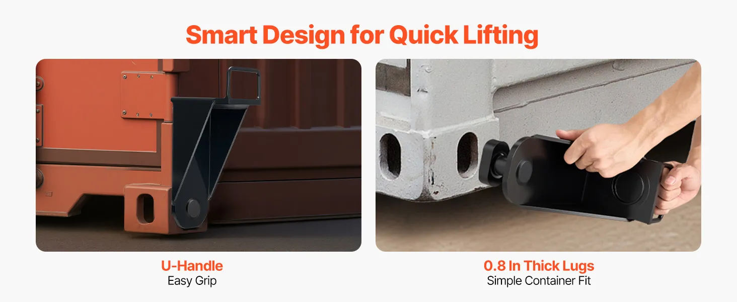 The container lug leveler is built from hardened steel with anti-rust coating. It withstands sun, rain, and outdoor use, offering dependable performance and extending service life.
