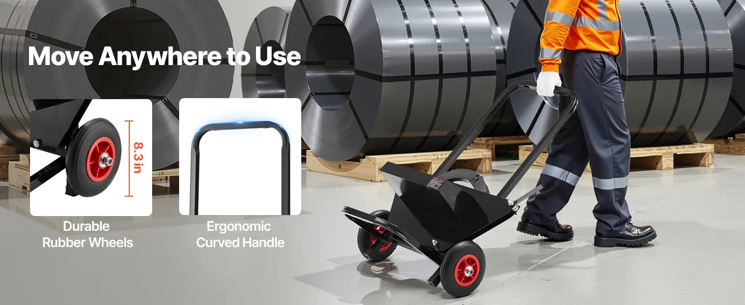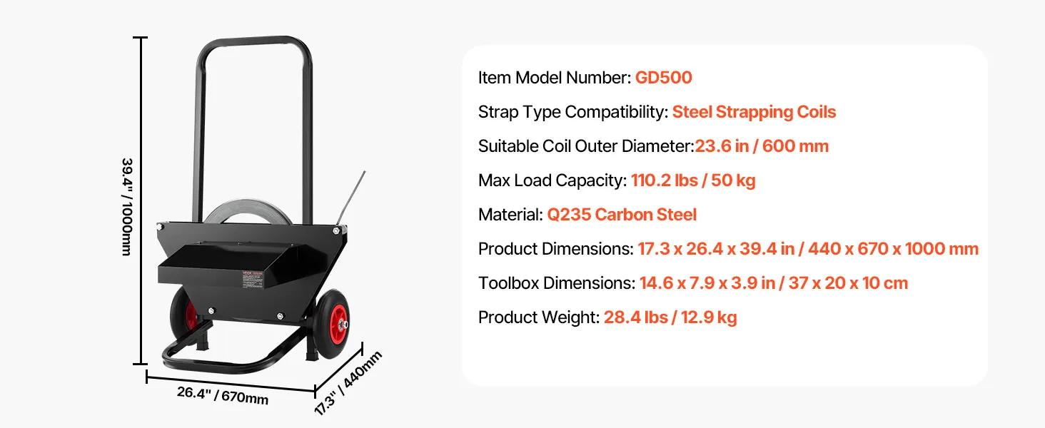 VEVOR Banding Strapping Cart, Fit for Steel Strapping Coils with 600 mm Core Outer Size, Heavy Duty Strapping Dispenser with Rubber Wheels, Suitable for Factory, Warehouse, Loading Area