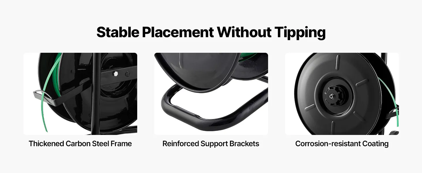 The strapping cart is made of high-strength carbon steel with a corrosion-resistant coating. It is wear-resistant, durable, and maintains shape across various environments.