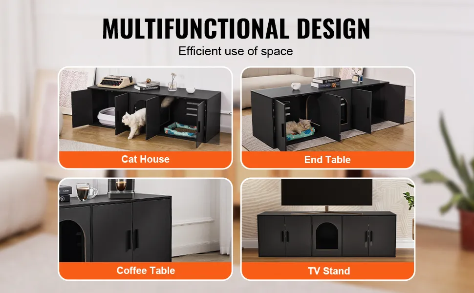 • Versatile Placement: The hidden cat litter furniture is ideal for living rooms, bedrooms, or bathrooms. Functions as a litter box enclosure, pet rest area, and extra storage without occupying additional space.