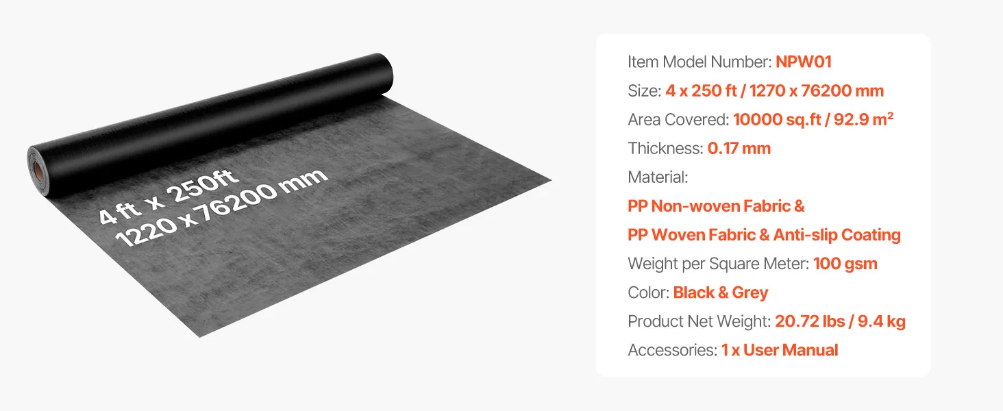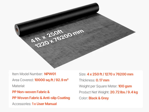 VEVOR House Wrap, 1220 x 76200 mm, 0.17 mm Thick Vapor Barrier, Heavy Duty Plastic Sheeting for Tear-resistant, Drop Cloth Vapor Barrier Covering for Residential & Commercial Construction, Black