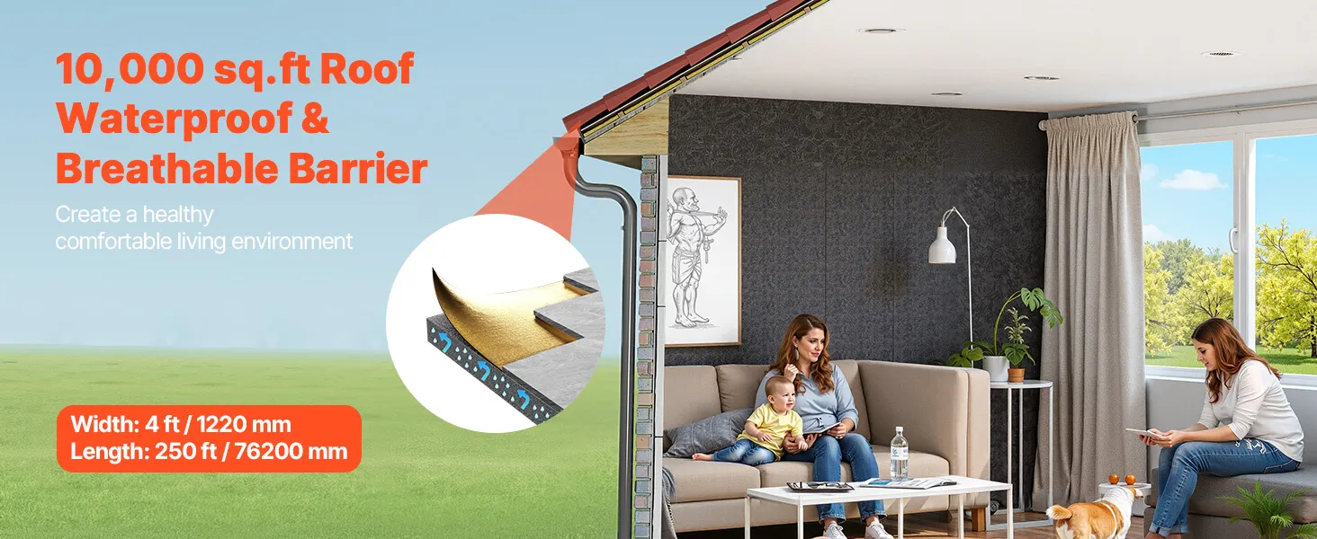 4 x 250 ft Roof Vapor Barrier – Waterproof & Breathable Membrane