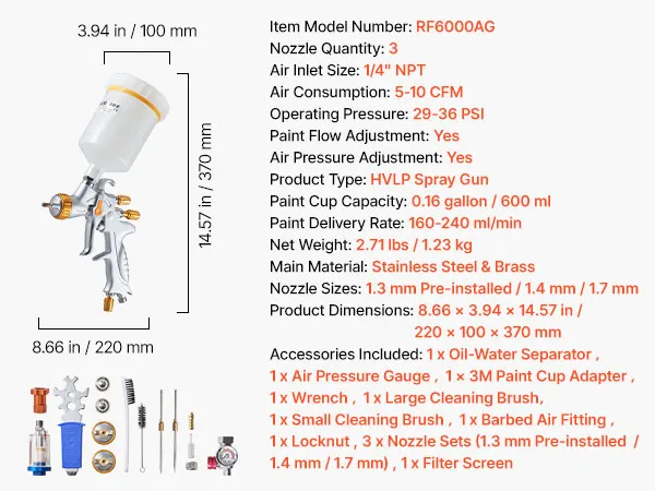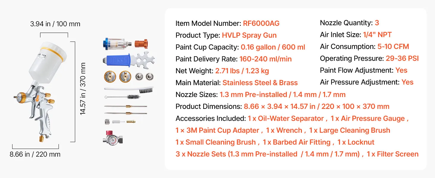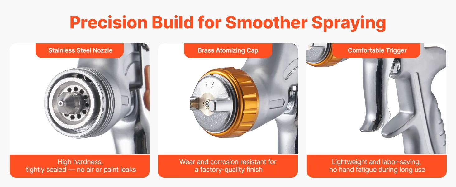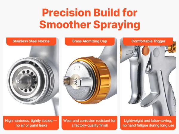 • Durable Build: Featuring stainless steel nozzles and a brass atomizing cap for excellent corrosion resistance and leak prevention. Perfectly ideal for automotive painting, furniture refinishing or home improvement and DIY projects