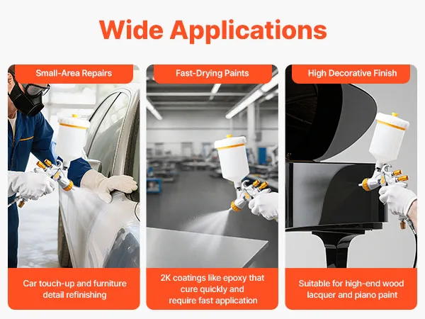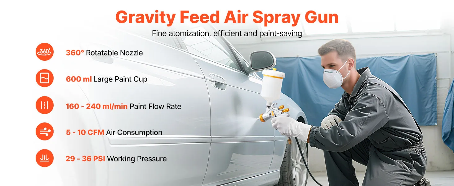 • Efficient & Paint-Saving: Utilizing high-atomization technology, the VEVOR HVLP air spray gun reduces paint mist rebound and overspray, saves your costs, and significantly improves paint utilization