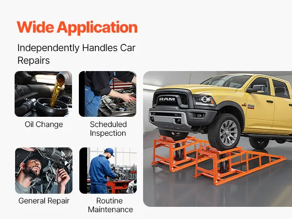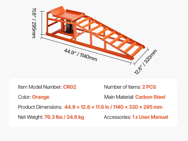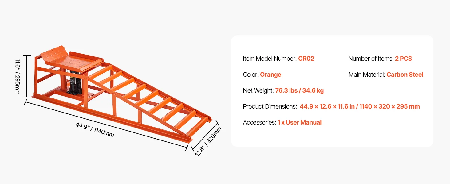 • Sturdy & Durable: These car service ramps adopt heavy-duty steel material with a painted finish to resist rust. They are study, stable, and corrosion-resistant, suitable for high-intensity maintenance work