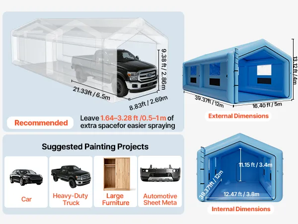 VEVOR Inflatable Paint Booth, 12 x 5 x 4 m, Inflatable Spray Booth with 950W+1100W Blowers and Air Filter System, Triangular Roof, for Painting Car, Truck, Large Furniture, and Automotive Sheet Metal