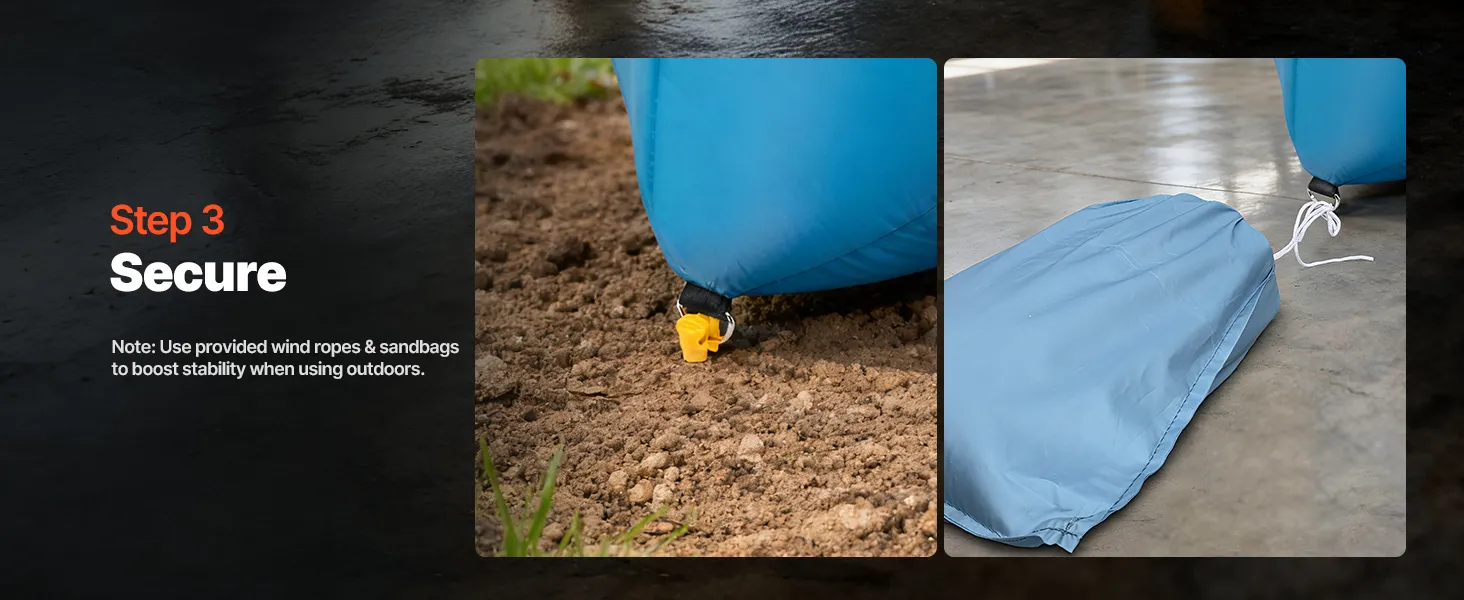 The blow up paint booth is multi-stitched for superior strength. It supports heavy weight without tearing, making transport and storage effortless and secure.