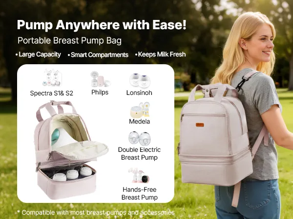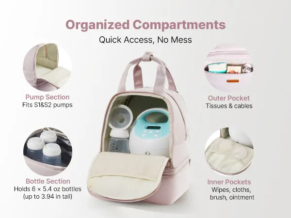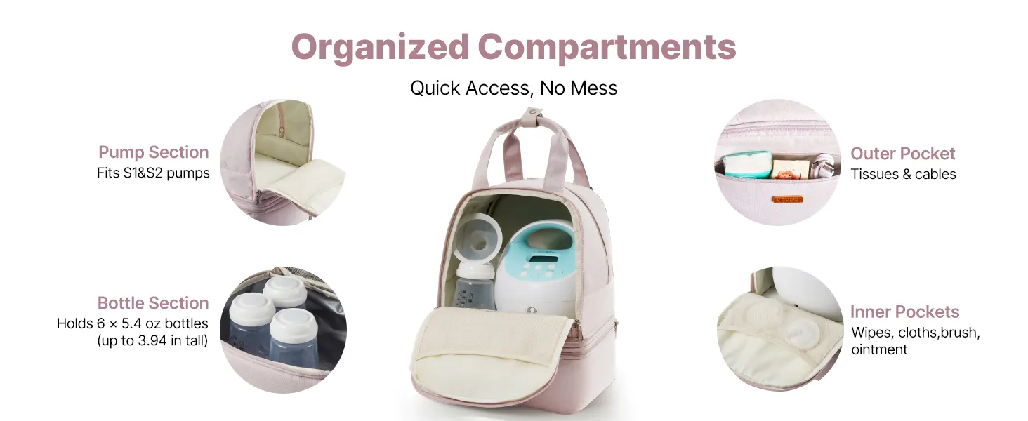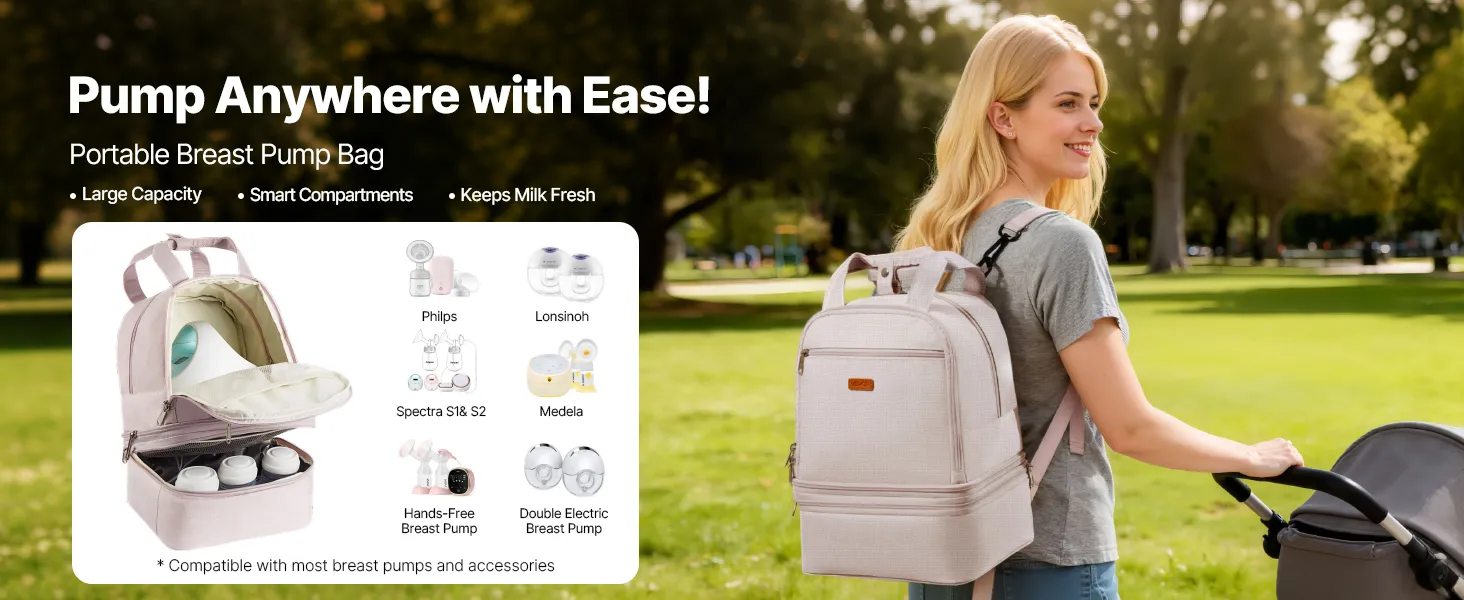 This breast pump bag has roomy compartments for daily essentials. The insulated lining keeps milk fresh, and the portable design makes it super easy to carry anywhere.