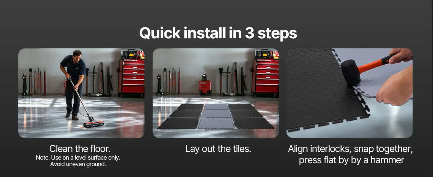 A: Use a rubber (soft-face) mallet to gently tap along the interlocking seams as you join the pieces—this makes the connection tighter and easier.