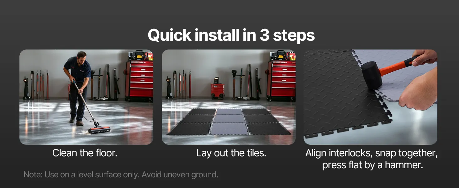 A: Use a rubber (soft-face) mallet to gently tap along the interlocking seams as you join the pieces—this makes the connection tighter and easier.