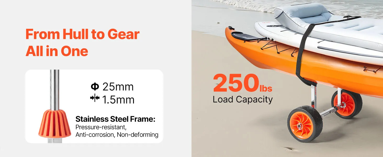 Тележка для каяка VEVOR, грузоподъемность 113 кг – складная тележка для SUP и каноэ с 19 см резиновыми колесами, легкая сборка