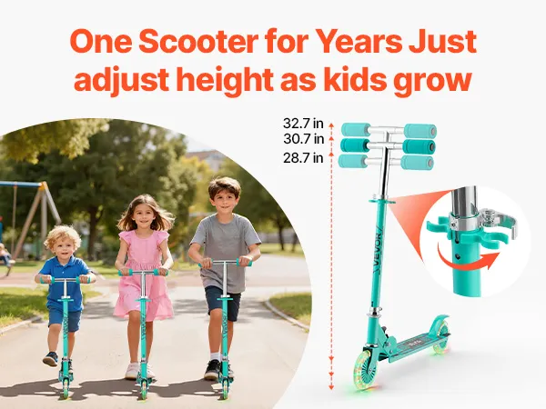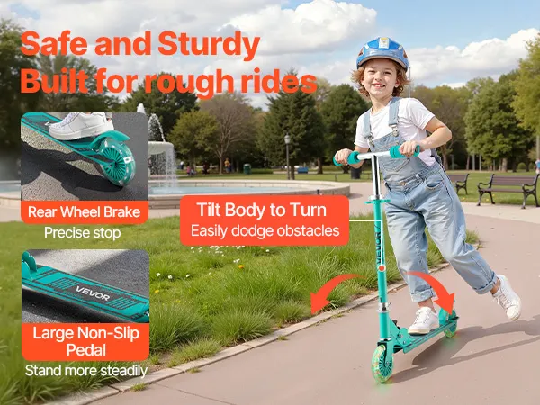 Our kids kick scooter features non-slip handle covers for a secure grip, ensuring it won't easily slip out of little hands.