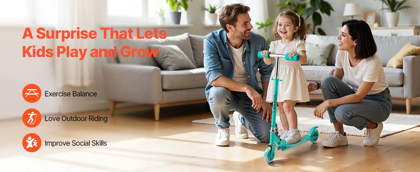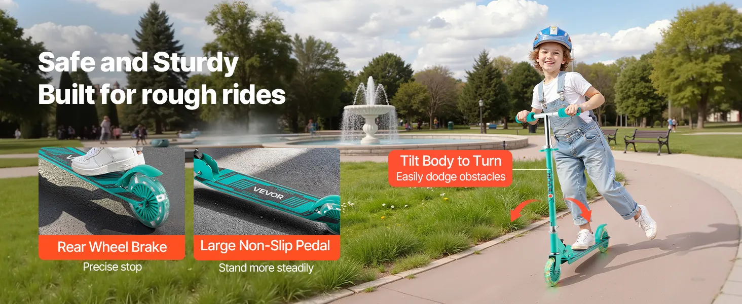 Designed for kids ages 3+, this kids kick scooter brings active fun to childhood. Its durable build and large wheels provide a smooth ride indoors and outdoors, giving parents peace of mind. Lean-to-turn steering helps develop balance and coordination, and beginners can master riding right away.