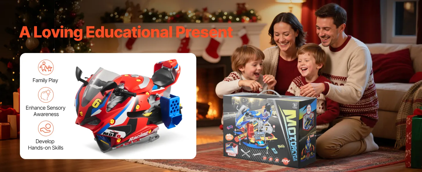 Made of high-quality ABS & PP, this interactive motorcycle engine toy has rounded edges and a smooth finish for secure play. It’s a wonderful birthday or holiday surprise that combines fun, fine motor practice, and parent-child bonding.