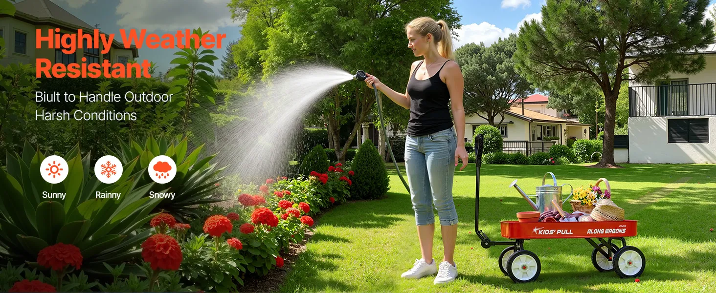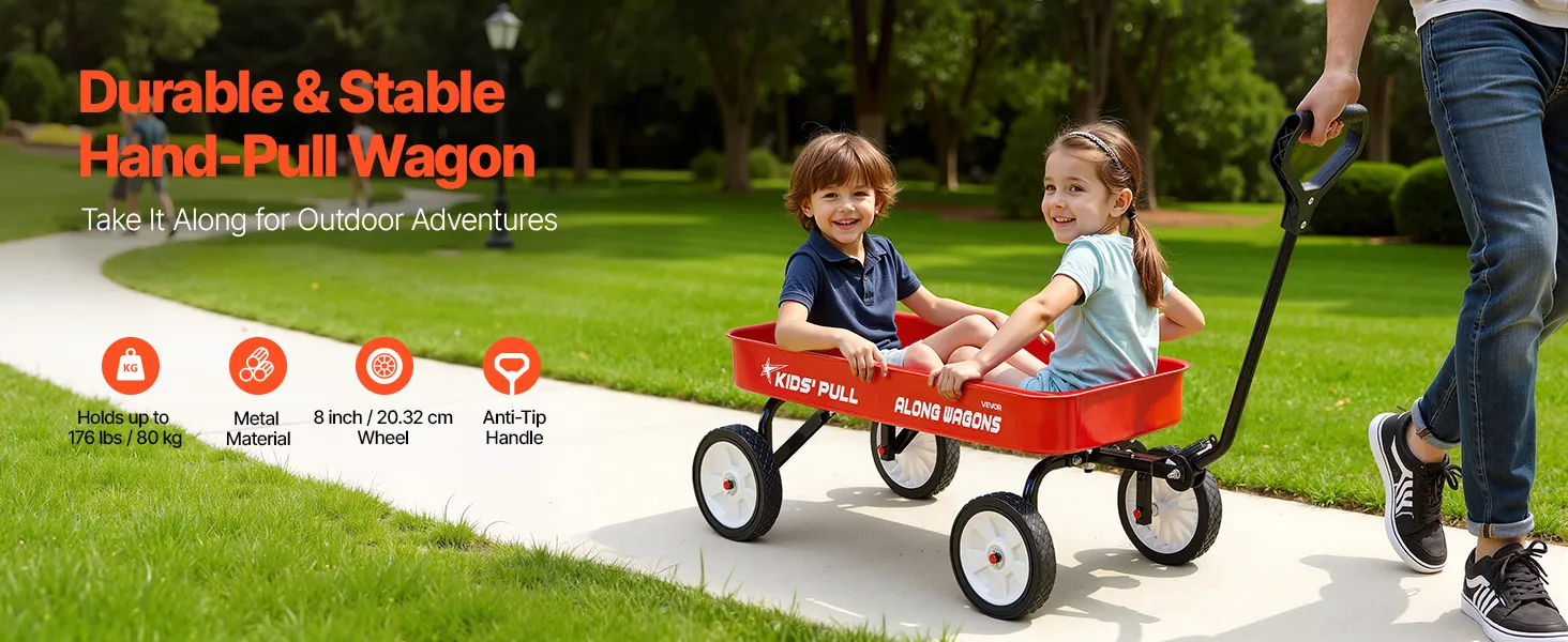 Made from premium carbon steel with a quality powder-coated finish, this toddler wagon is built to withstand harsh outdoor elements. It resists rust, is waterproof, and is easy to clean, minimizing maintenance and providing peace of mind during outdoor use.