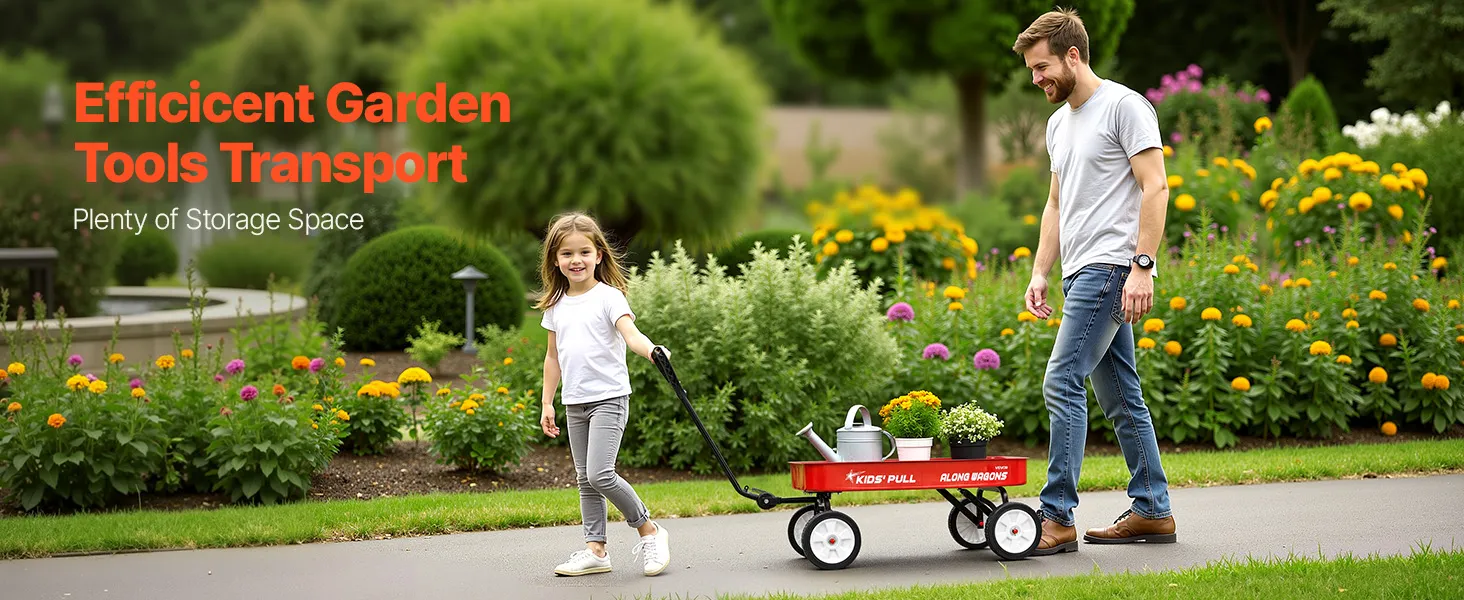 With a spacious interior measuring 39.76" × 18.9" × 14.17", this child wagon easily holds gardening tools, making it easier to transport everything in one trip. No need for frequent back-and-forth trips—everything can be loaded and ready to go in a single journey, saving time and effort.