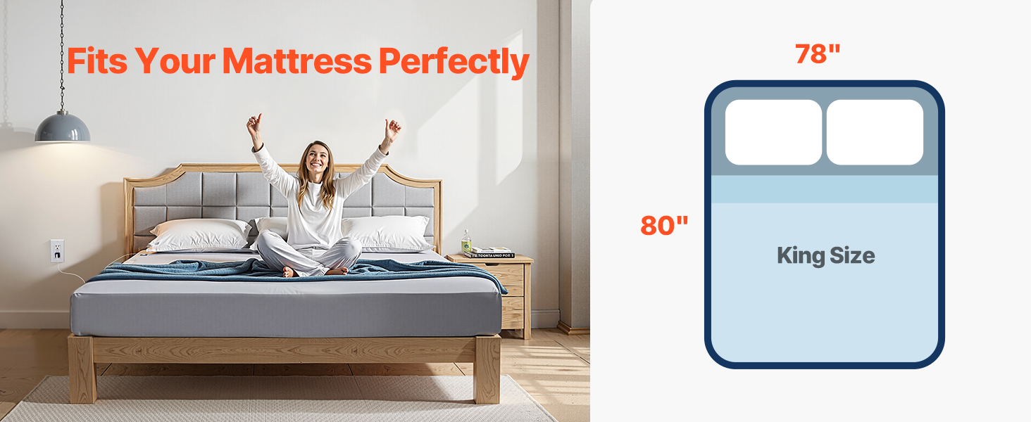 VEVOR Grounding Sheets, King Size, 95% Cotton + 5% Pure Silver Fiber, Earth Grounded Fitted Bed Sheets, with Grounding Cord & Tester, for Improved Sleep & Wellness (Gray, King - 1981 x 2030 x 5 mm)