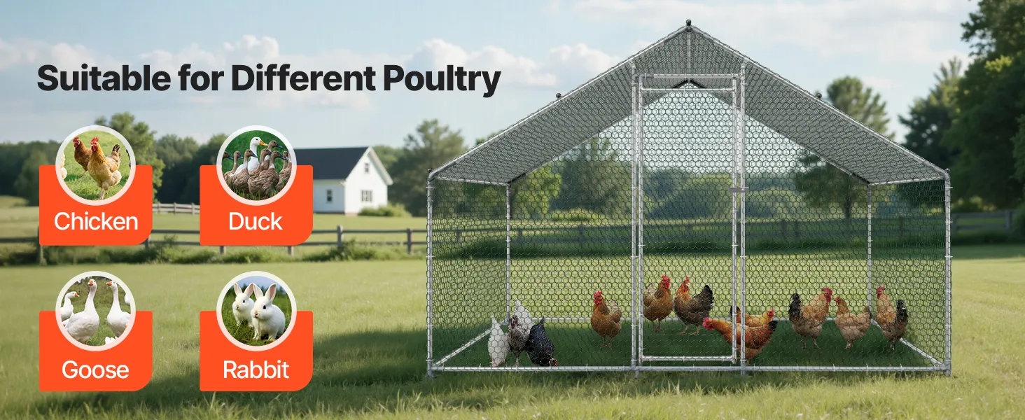 • Versatile Application: The chicken runs for yard with cover is not only suitable for chickens but also for ducks, quails, rabbits, geese, and other poultry. It meets your needs, providing a secure and comfortable living space for the poultry.