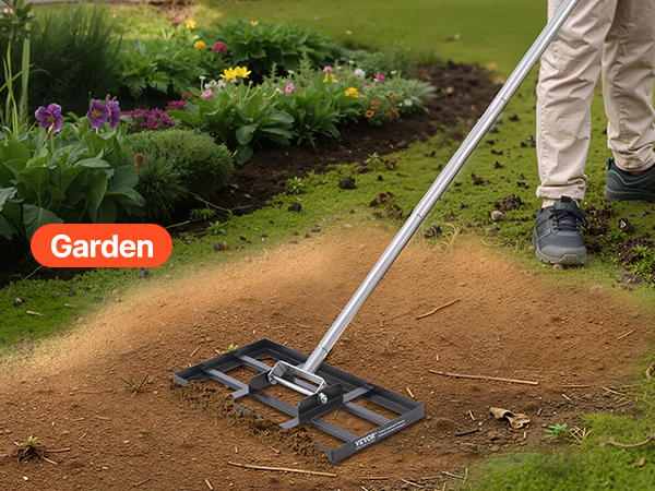 VEVOR Lawn Leveling Rake, Lawn Leveler with 78 in Handle, 17x10 in Ground Plate, Rust-Resistant Carbon Steel Soil Leveler, 5 Heights Adjustable, Effort Saving Lawn Leveling Tool for Yard Golf Court