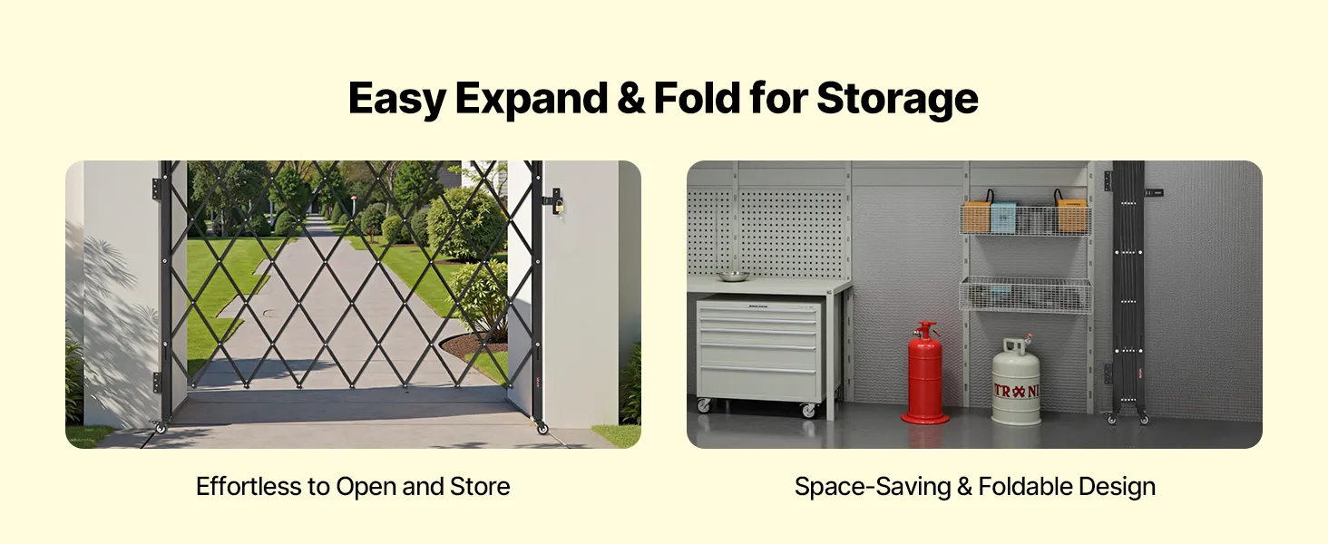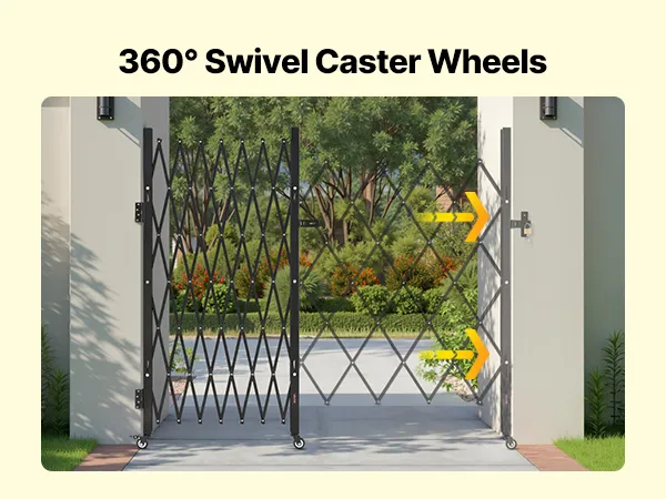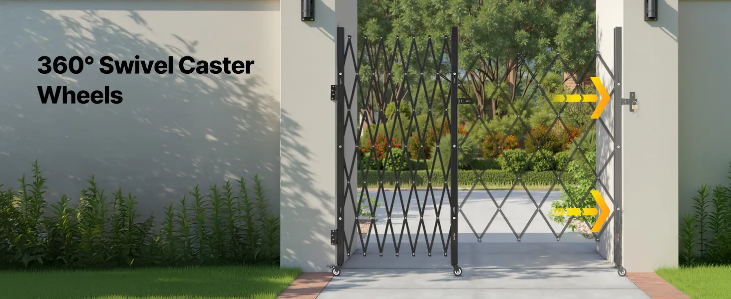 VEVOR Single Folding Security Gate, Lockable Scissor Gate with 360° Swivel Casters, Outdoor Barricade Steel Retractable Gates, for Entry Security, Garage, Warehouse & Pool, 180 × 161 cm (W × H)