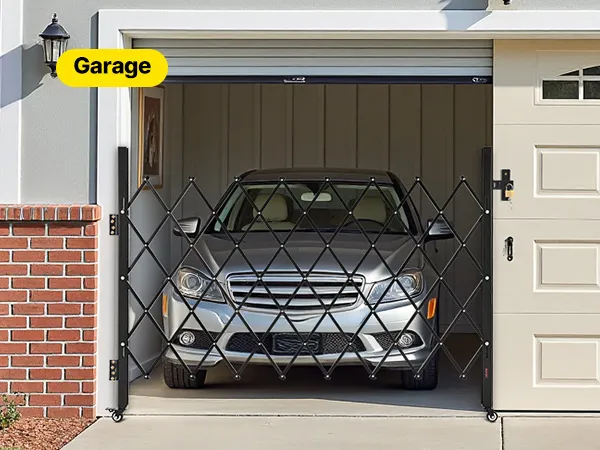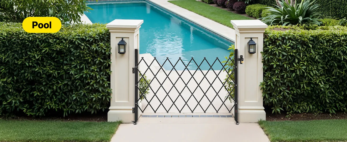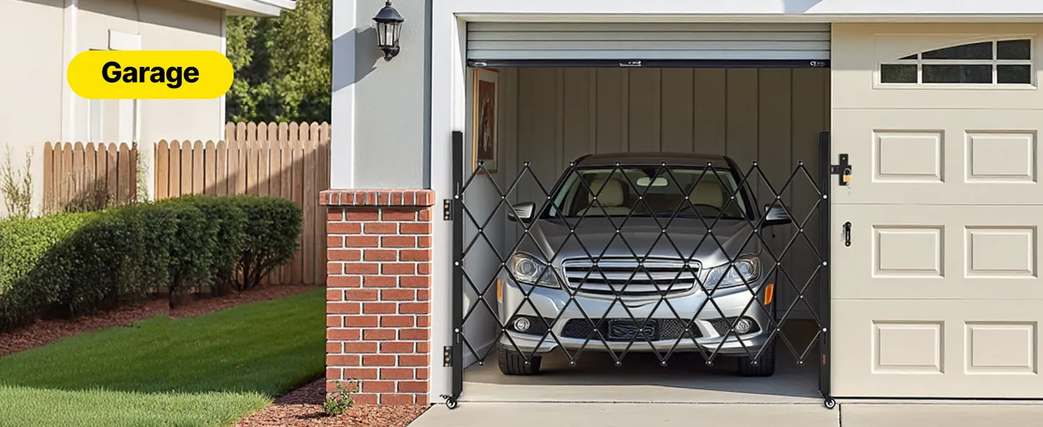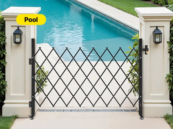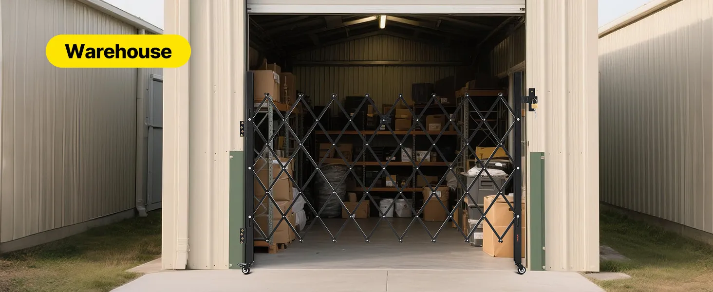 Our folding security gate is made of durable channel steel with a black powder coating for extended use. It features a lock for enhanced security and comes with an installation kit, making it ideal for busy hallways or entrances in commercial settings.