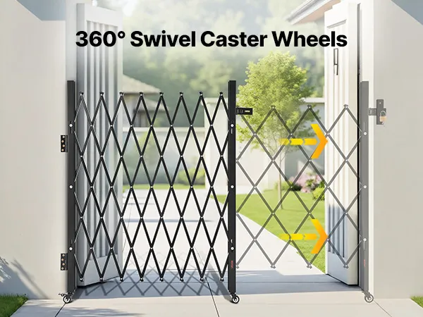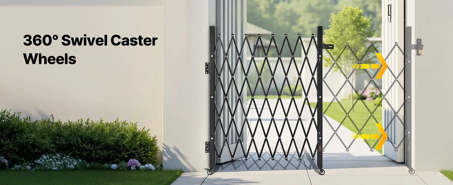 VEVOR Single Folding Security Gate, Lockable Scissor Gate with 360° Swivel Casters, Outdoor Barricade Steel Retractable Gates, for Entry Security, Garage, Warehouse & Pool, 170 × 131 cm (W × H)