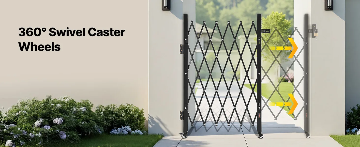 VEVOR Single Folding Security Gate, Lockable Scissor Gate with 360° Swivel Casters, Outdoor Barricade Steel Retractable Gates, for Entry Security, Garage, Warehouse & Pool, 110 × 131 cm (W × H)