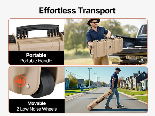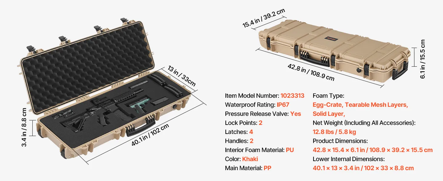 VEVOR Hard Rifle Case, Lockable Rifle Case with Pre-cut Foams, 1016 mm Gun Storage with Wheels, IP67 Waterproof & Dustproof Movable Large Pistol Storage for Rifles, Shotguns, Airsoft Guns, Khaki