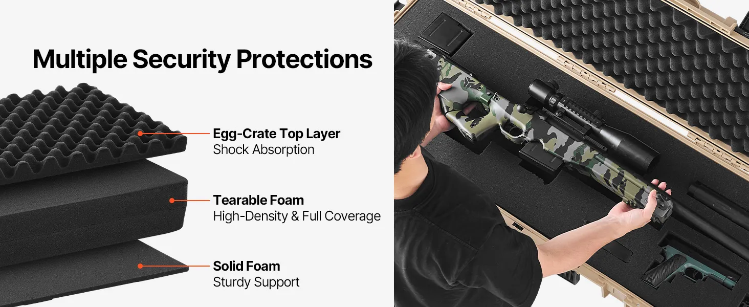 With its rugged construction, this hard rifle case ensures your firearms are always well-protected, keeping them secure in any situation.