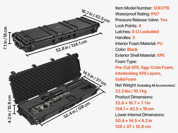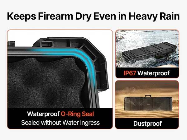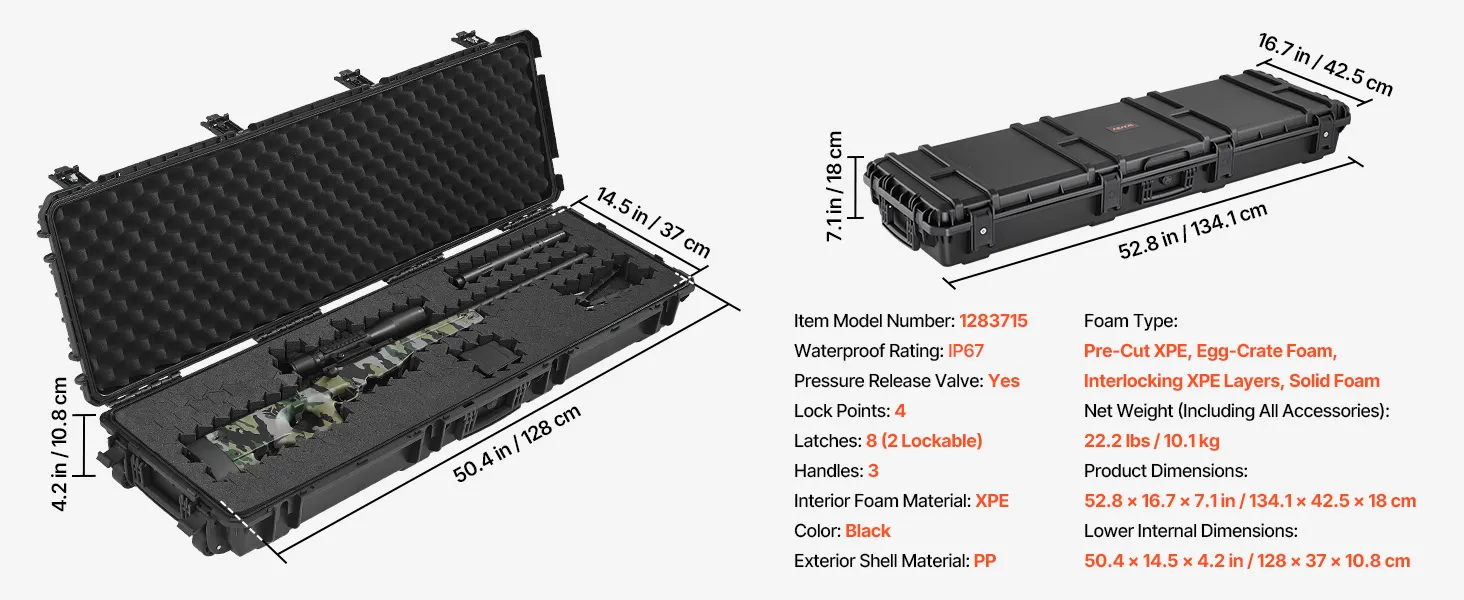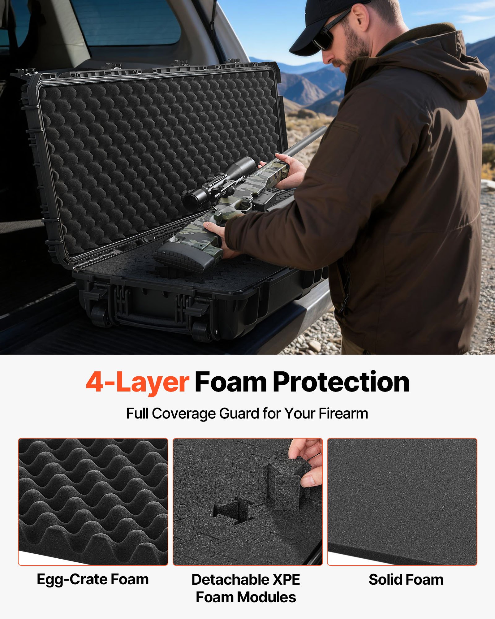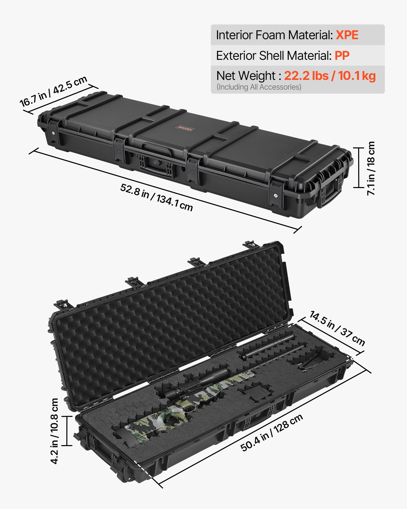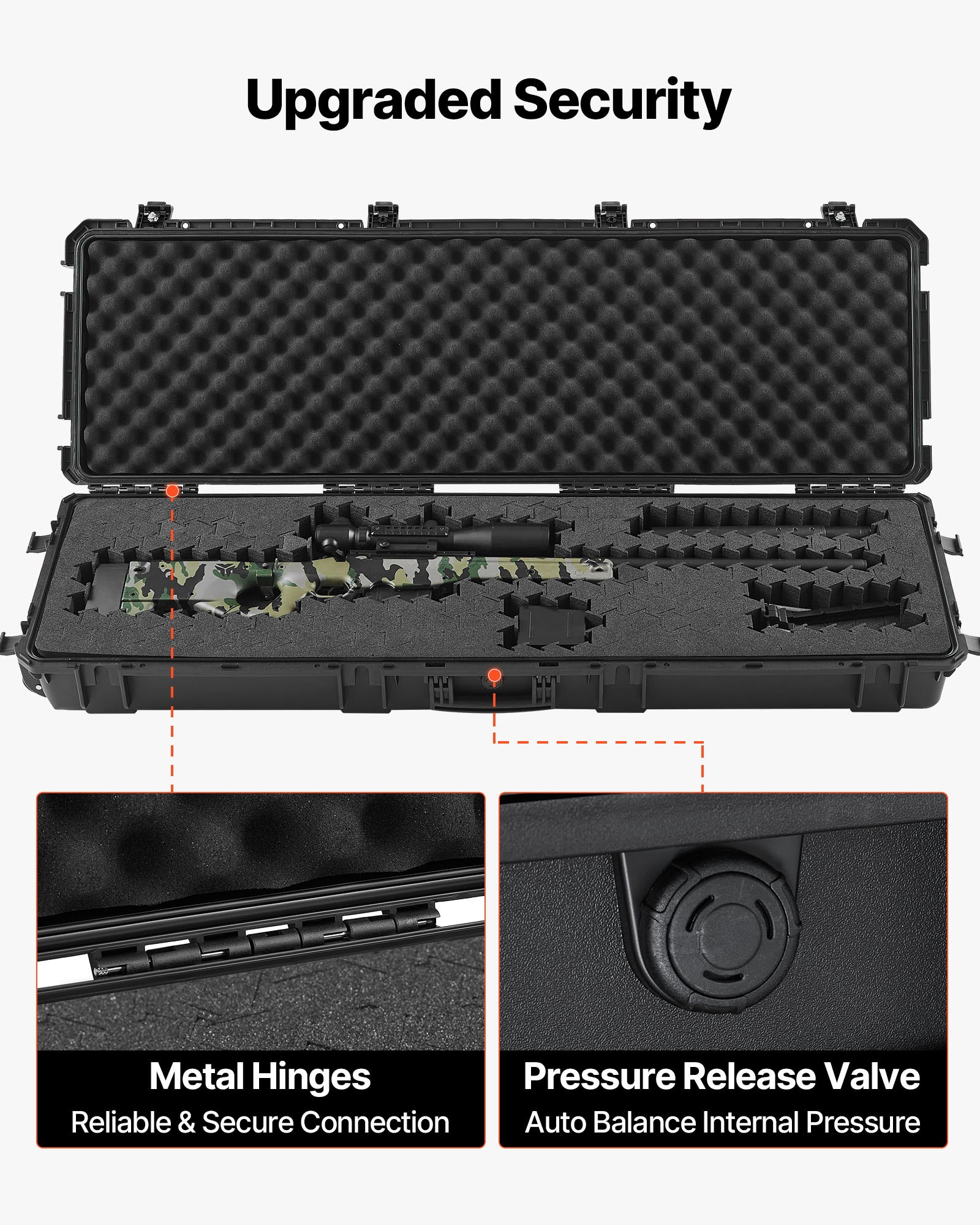 VEVOR Hard Rifle Case, Lockable Rifle Case with Detachable XPE Foam, 1270 mm Gun Storage with Wheels, IP67 Waterproof & Dustproof Pistol Storage Cases for Rifles, Shotguns, Airsoft Guns, Black