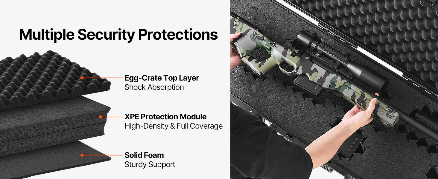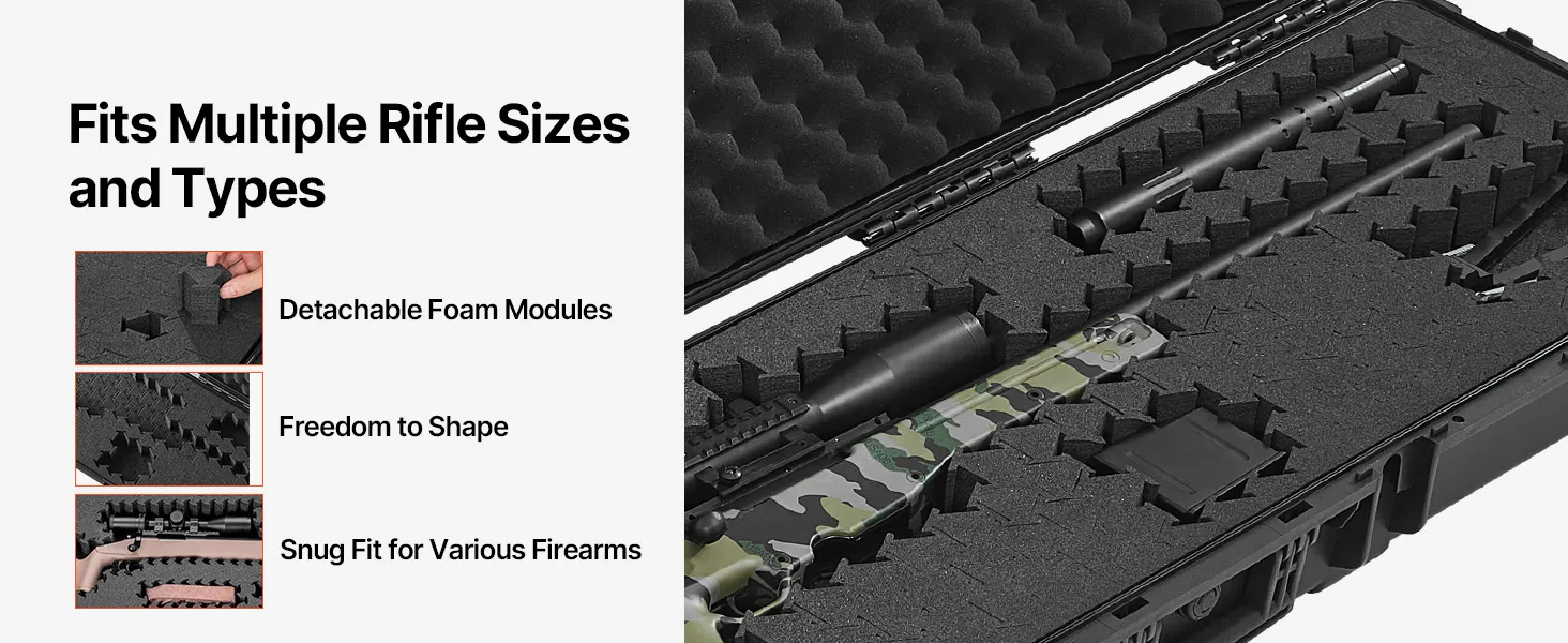 With its rugged construction, this hard rifle case ensures your firearms are always well-protected, keeping them secure in any situation.