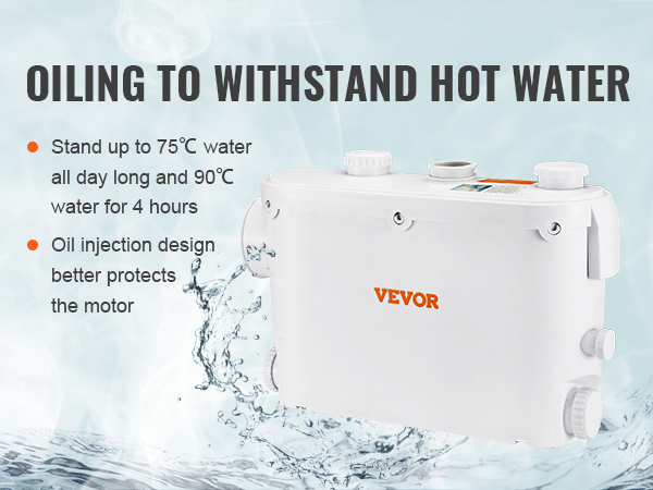 • Смазка для защиты от горячей воды: В двигатель впрыскивается масло, чтобы защитить себя и выдерживать непрерывную подачу воды при температуре 75 ℃ или 4-часовую подачу воды при температуре 90 ℃. Наш туалетный насос для подвалов выдерживает подачу более горячей воды в течение более длительного времени, чем что-либо другое на рынке, что делает его более термостойким и долговечным.