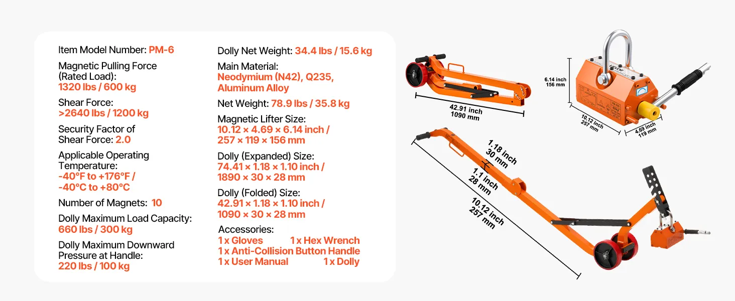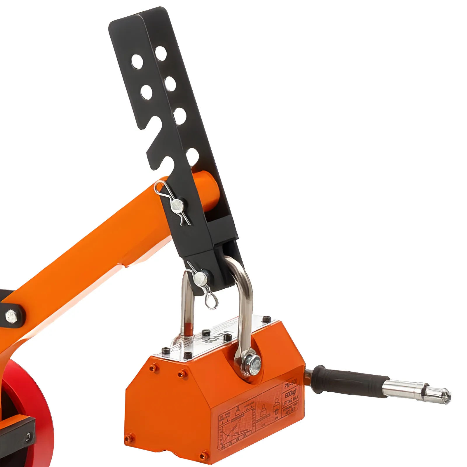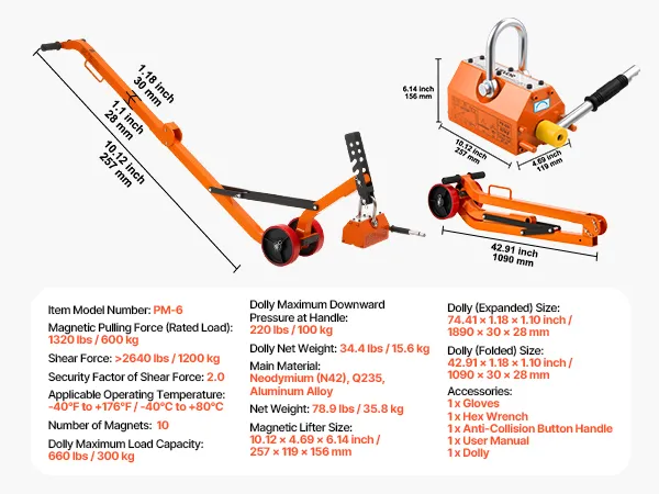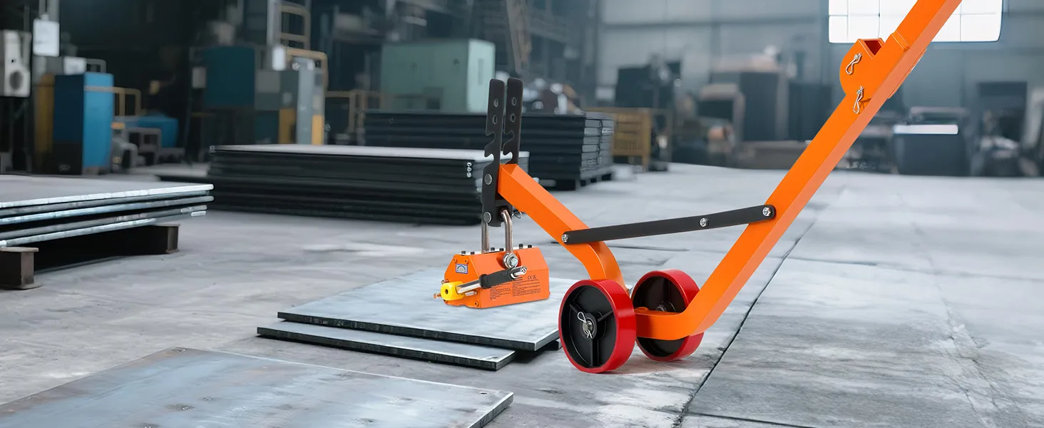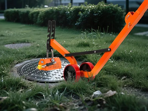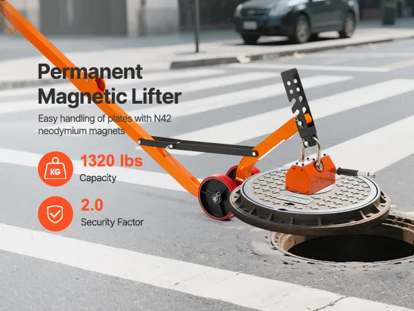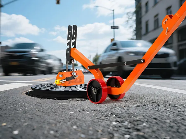 The steel dolly with magnet lift is designed with a foldable structure for convenient transport and compact storage. The 1320 lbs magnetic force ensures a firm grip and efficient lifting of various manhole lids with ease.