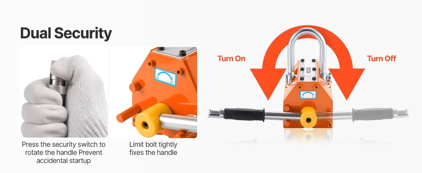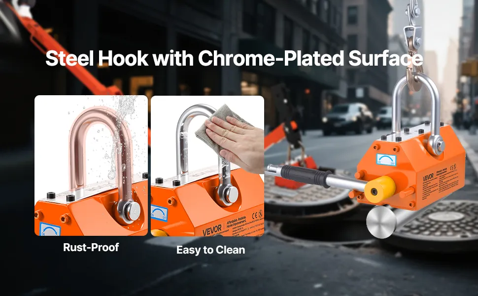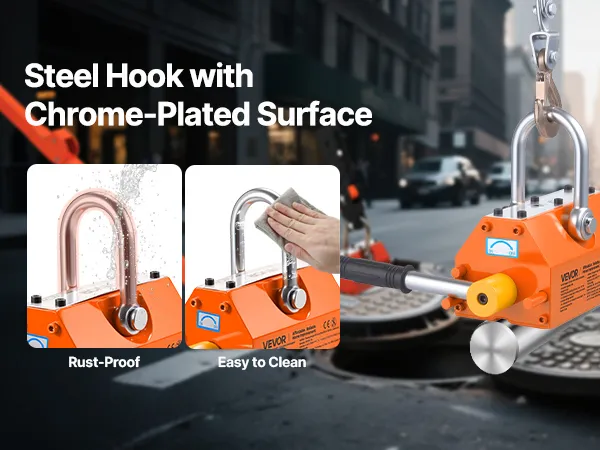 Our manhole cover lifter features easy one-handed operation. Switches magnetic force without electricity—turn left to activate strong magnetism, turn right to release.