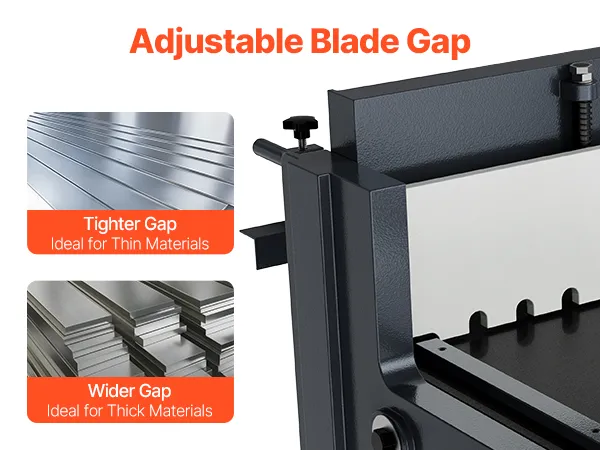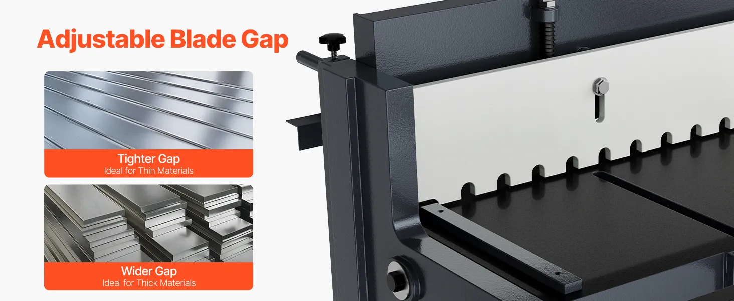 The blade gap on our shear is manually adjustable. When set to a smaller gap, it's ideal for thinner materials, while a larger gap is better for thicker sheets. This flexibility allows for precise adjustments based on the cutting needs of materials.