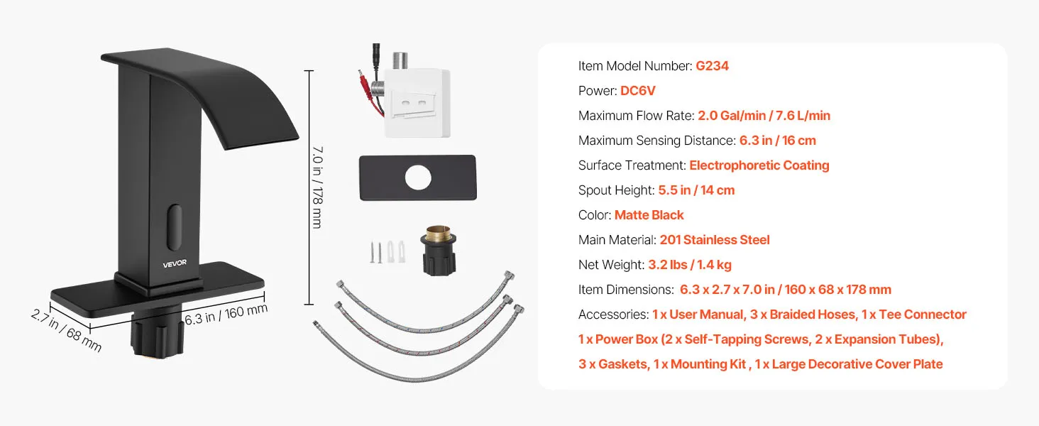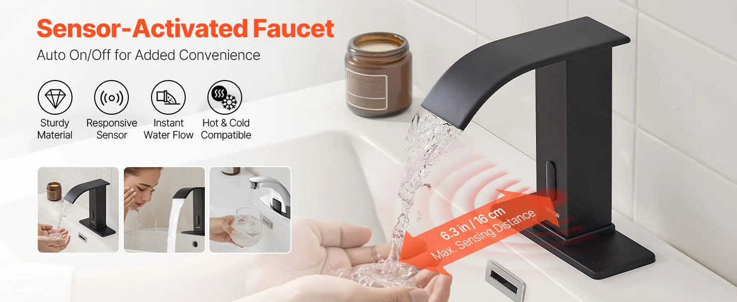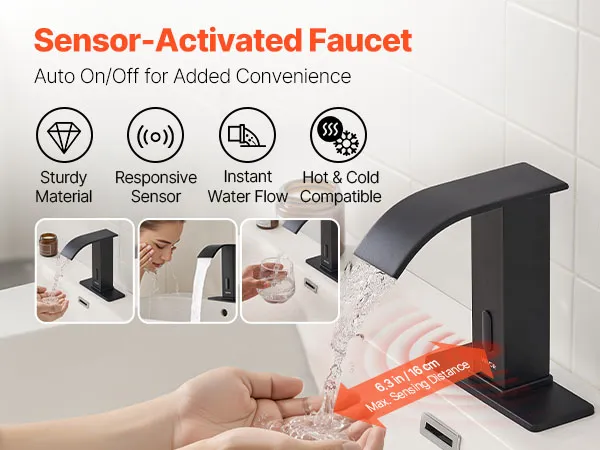 • Automatic Water Flow: Upgrade your bathroom with this touchless bathroom sink faucet. The built-in infrared sensor faucet activates water flow automatically. With a long sensing range, this faucet delivers water effortlessly for easier handwashing