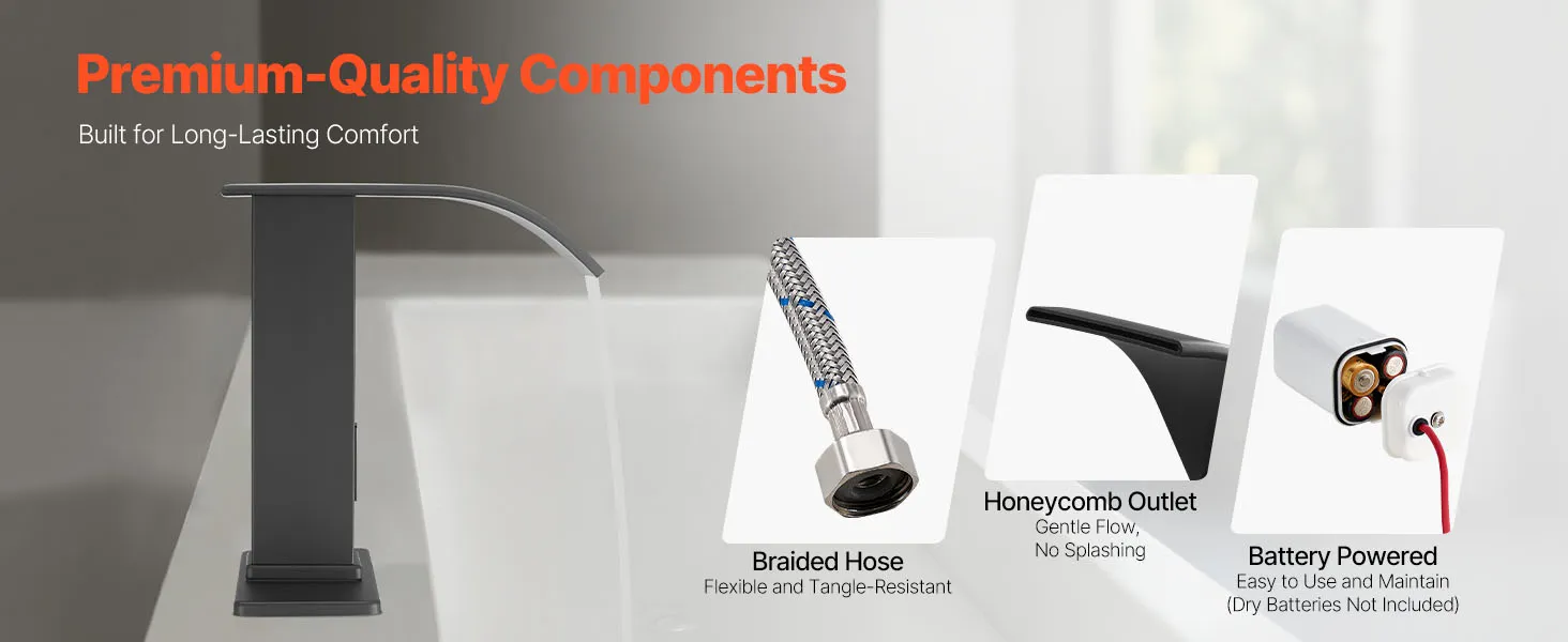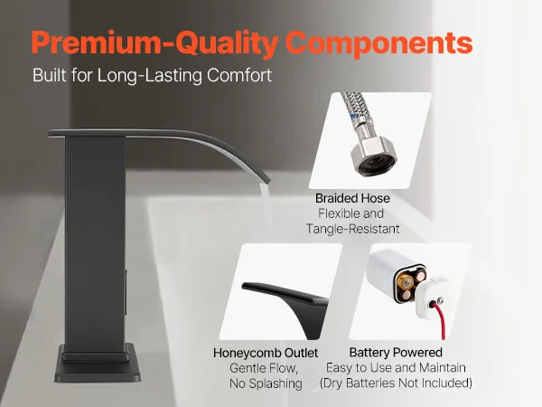 • Easy Maintenance: Powered by 4 AA alkaline batteries (not included), this touchless bathroom faucet is secure and easy to maintain. Simply unscrew the top cap—no tools needed—for quick battery replacement