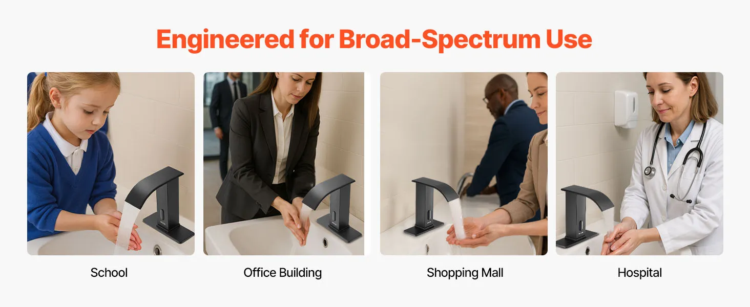 • Sturdy & Rust-Resistant: This touchless faucet is crafted from stainless steel, handles both high and low temperatures with ease. Its polished surface helps reduce buildup and supports long-term use with constant water exposure