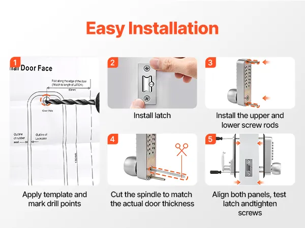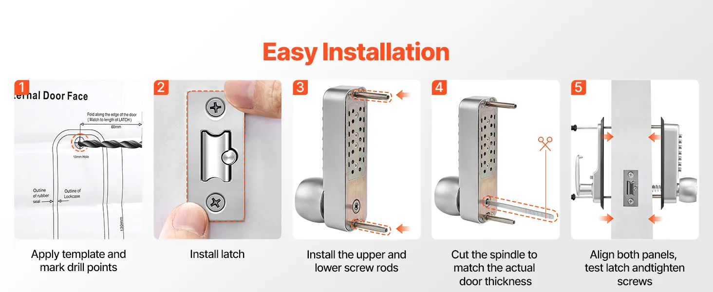 No electrical wiring or complicated debugging is needed. Our mechanical keypad door lock fits most standard door types and can be independently installed by individuals, saving time and effort.