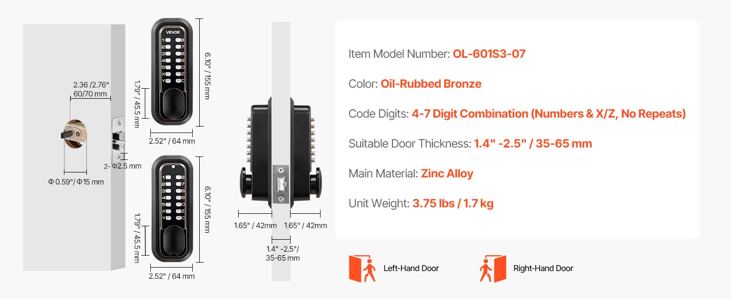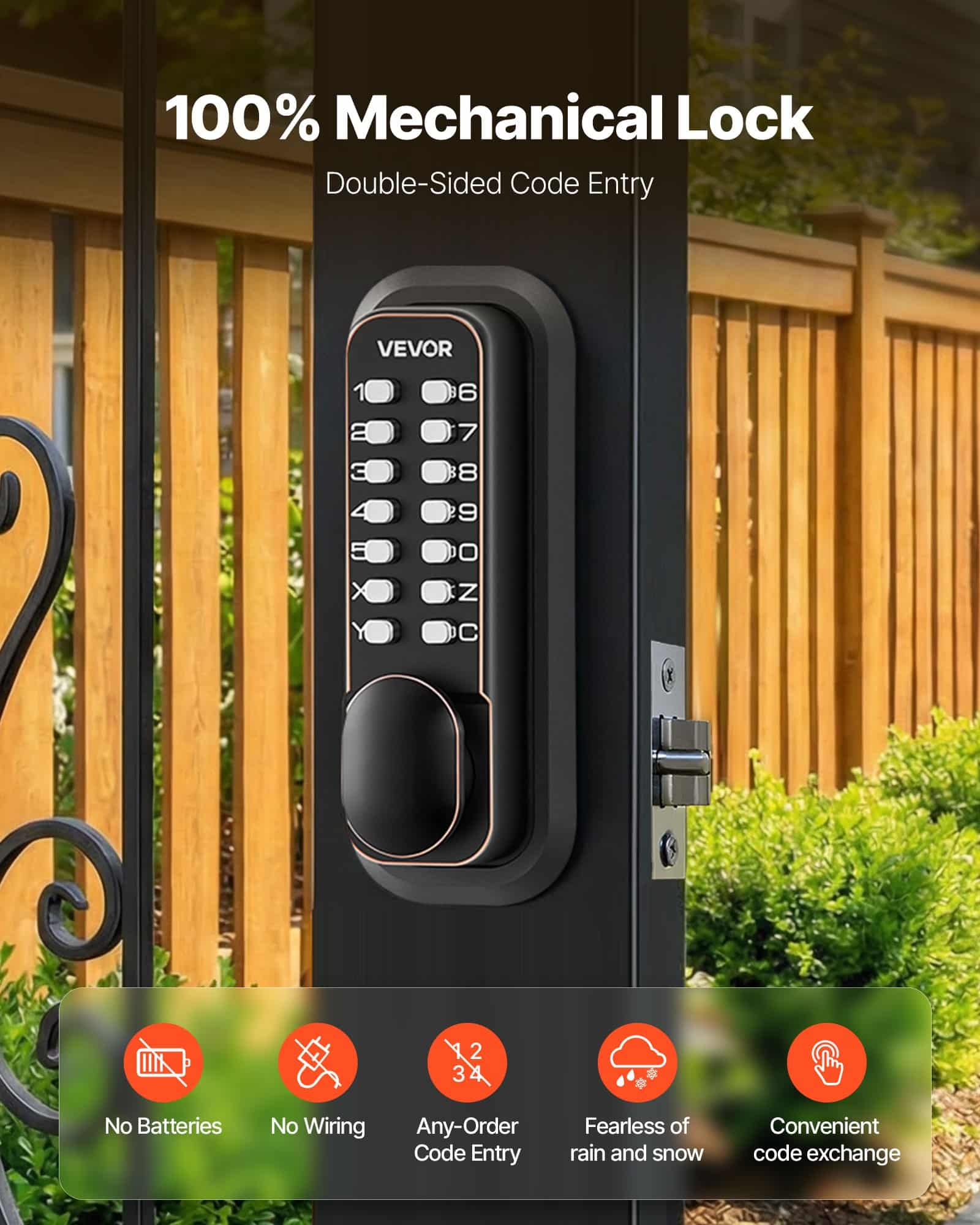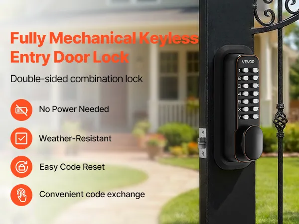 With a fully mechanical keypad, all-metal construction, and multiple convenient modes, the mechanical keyless entry door lock delivers reliable everyday security without wiring, apps, or maintenance. Designed for both indoor and outdoor use, it provides smooth operation and long-lasting performance.