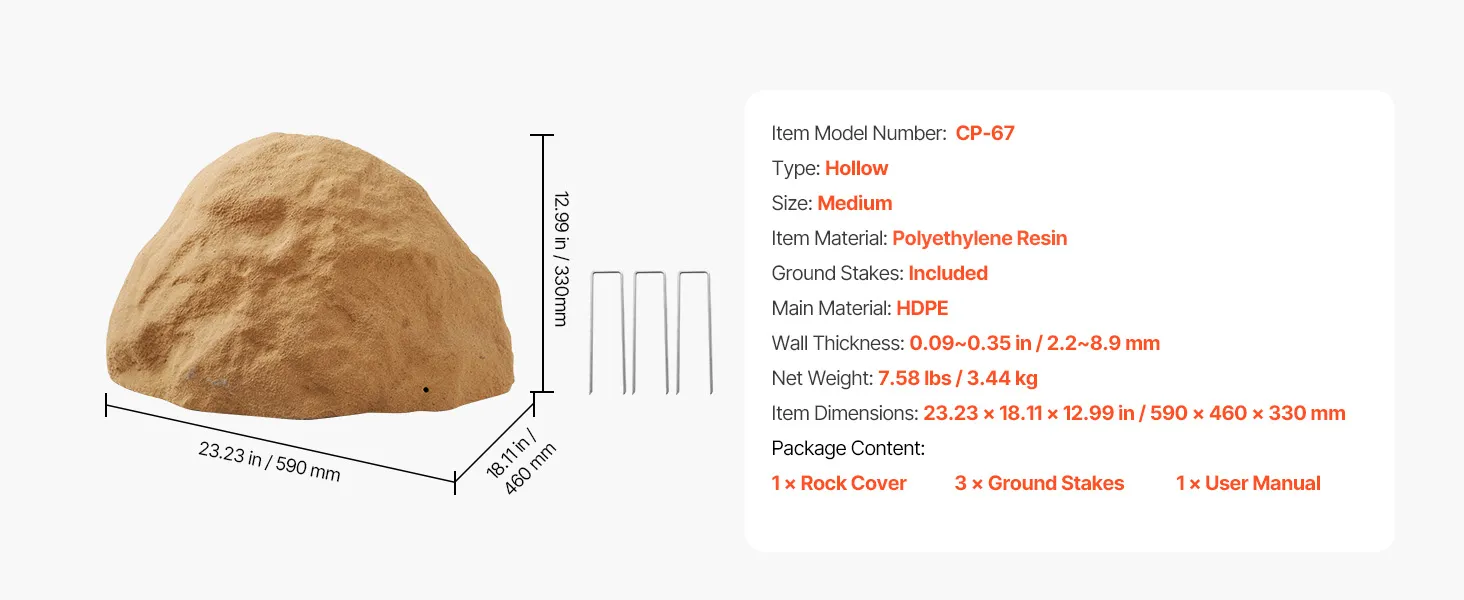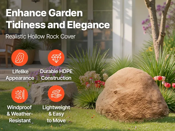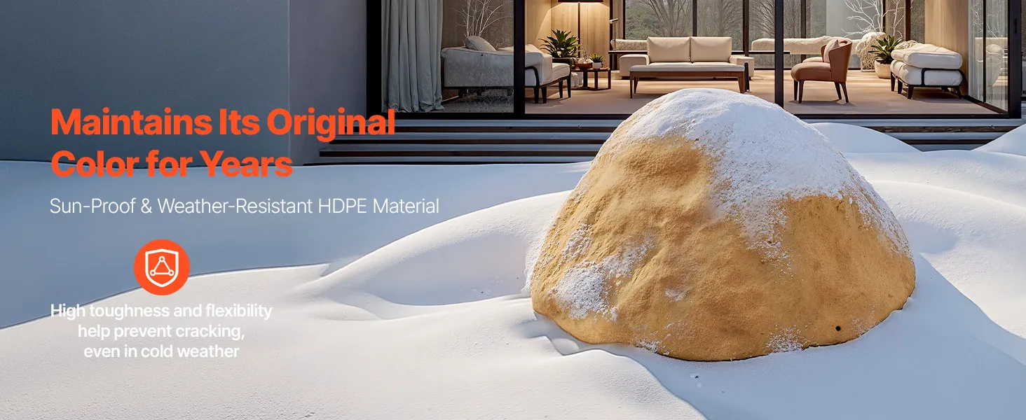 Crafted from high-density HDPE, this rock cover is sun-resistant, fade-proof, and crack-resistant even in harsh winter conditions. Our faux rock cover maintains a neat appearance for long-term outdoor use—reliable and durable.