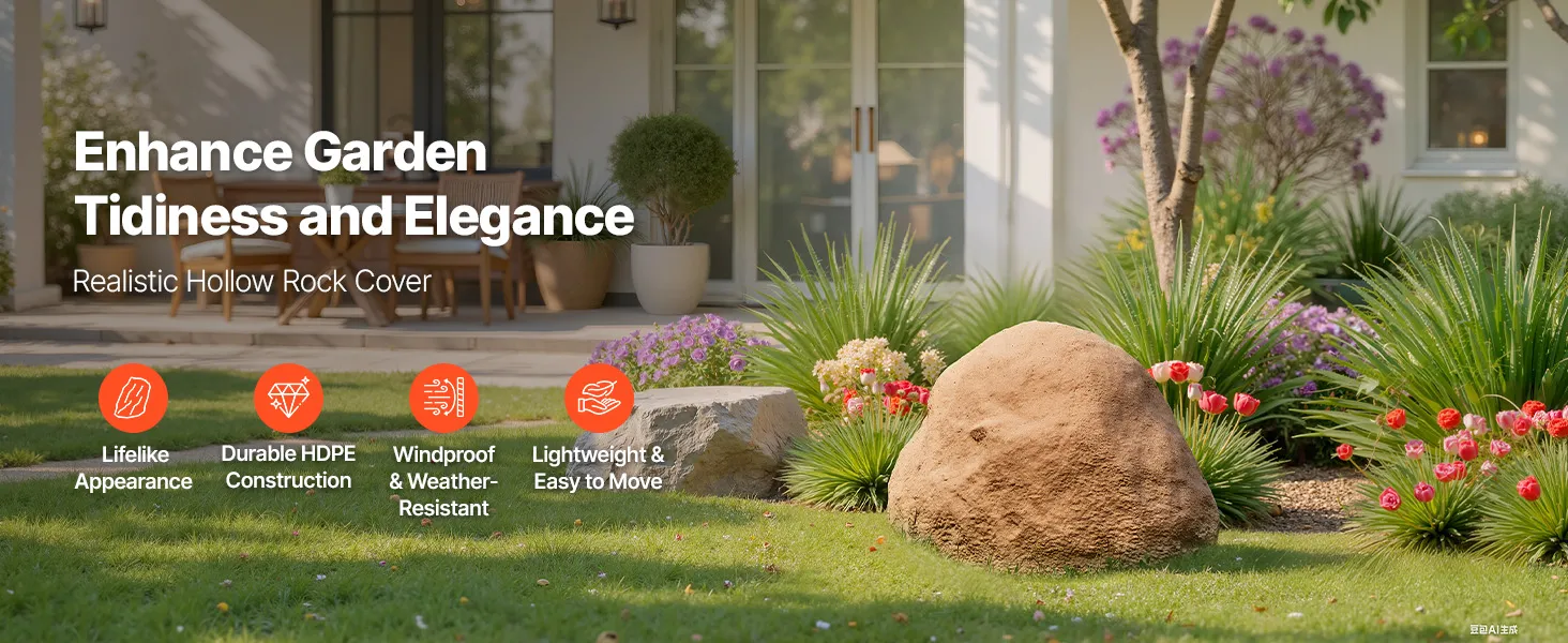 The faux rock exterior blends seamlessly into the natural conditions, easily concealing clutter like manhole covers and pipes. Our fake rock cover enhances garden neatness and visual appeal to create a great outdoor space.
